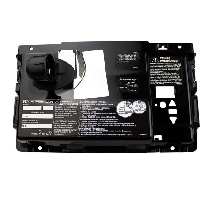 041A7757 is an End Panel Replacement kit. For use with various Chamberlain Belt Drive Garage Door Openers; manufactured after 2012. Check the manual or replacement parts diagram for specific part information before ordering to ensure compatibility.